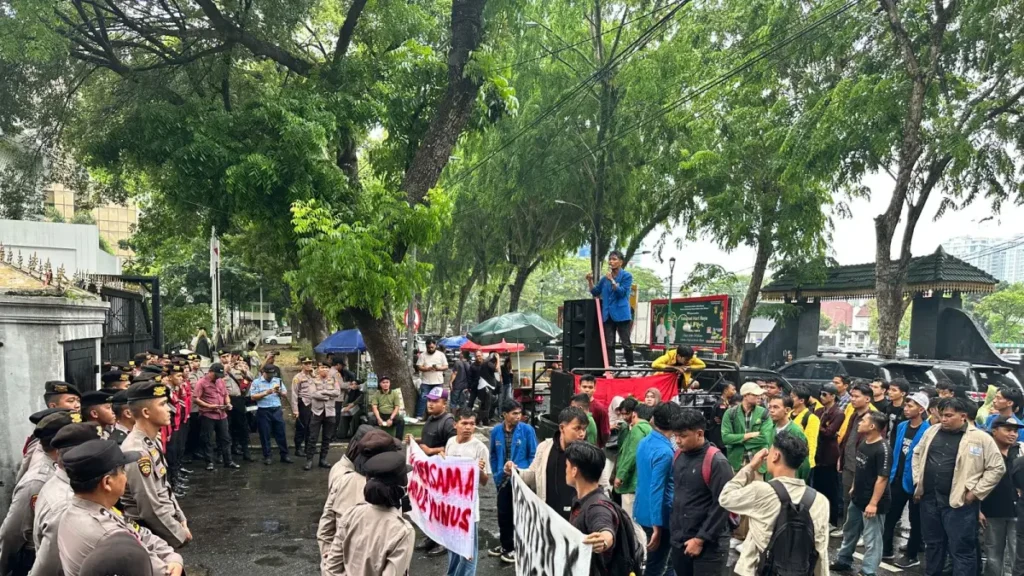 MAHASISWA – Aksi unjuk rasa yang digelar mahasiswa di Sumatera Utara berlangsung dengan tensi tinggi. Demonstrasi tersebut menjadi sorotan publik karena sempat memicu ketegangan di lapangan.